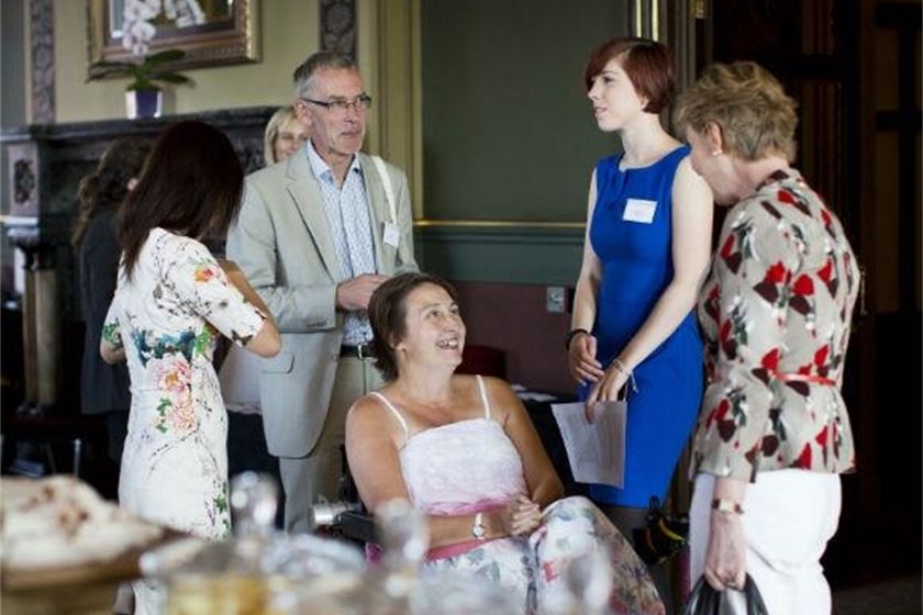 Speakers at the event also included patient Penny Roberts (pictured above with other attendees), who broke her neck in a sports accident aged 31 in 1995, resulting in permanent paralysis from the chest down.